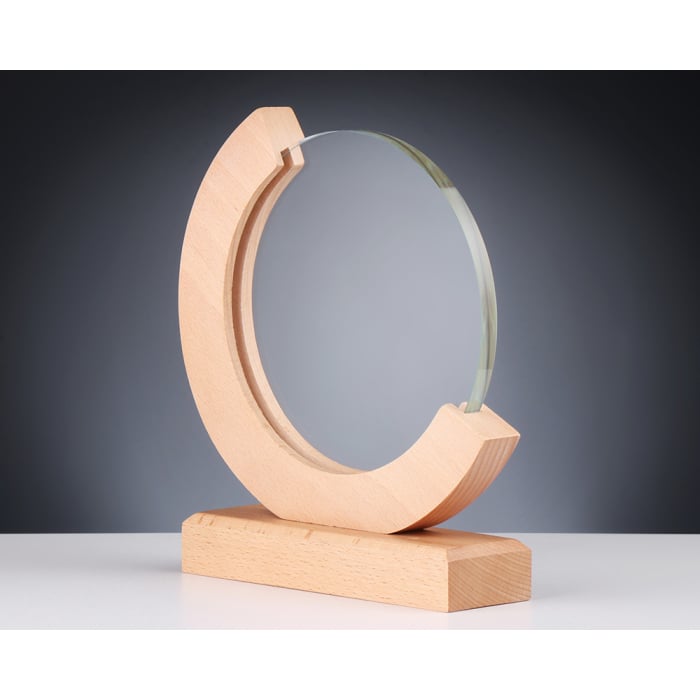 Rond glas d. 140mm in houten constructie